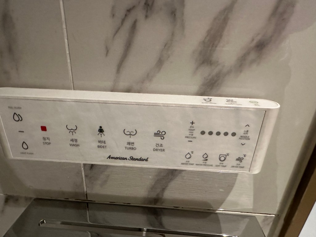 One other fancy item at the hotel was the toilet. We didn’t want to get off the heated seat. . . and there’s a dryer!!!!