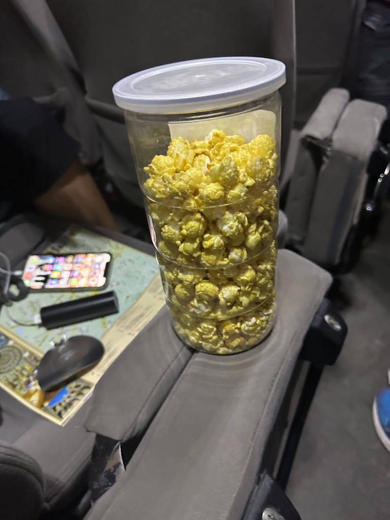- Eid tomorrow impacted our journey to Samakand and increased our drive time from 4 hours to 9 hours. That was a doozie and so were the bathroom stops along the way, but connecting with teams from around the country, hearing about their families and understanding their reasons for embarking on this wild adventure made it bearable and even fun. The literal bumps on the road (so many bumps), the moment we thought Kathleen was going get run over by one of the millions of white cars (observation; all the cars are white) on the road, and the terrible snacks we found along the way led to bonding and laughter despite a 2:30 am arrival and having to bang down the door at the hotel to get a in. Worst food winner thus far is the Banana flavored Popcorn. It was mistaken for buttered popcorn, which it was certainly not. Best food winner is the cucumber/tomato salad from the Bazaar. Yum!!