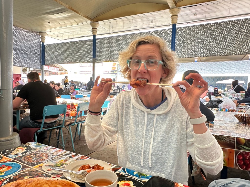 We met a new friend in the Metro who escorted us to the Chosu Market and helped us navigate the wild food market. He is hoping to work in the US one day and shadowed us around for while. He was 20 years old, and continued to pay for our items, much to our dismay, even though he was fasting. Over lunch he poured our tea, as is customary here.