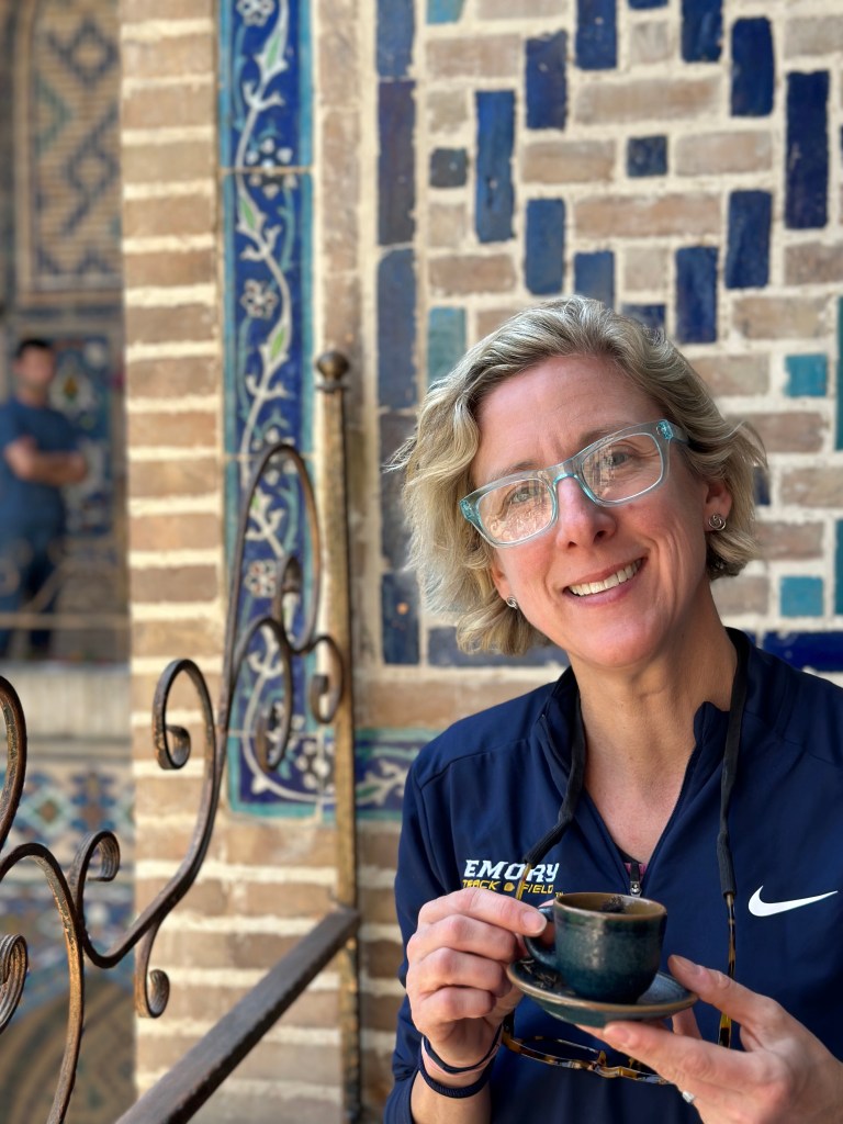 - Central Asian Market for some delicious Plov ( fried rice-ish) and Cherry Compote that was amazing. It was like cold Wassail. Shannon had her ubiquitous meal of bread and tomatoes. Donna helped an older Uzbek woman in traditional dress administer her eye drops in the bathroom. Thought it was a bit weird she’d ask, via sign language, the one person in the bathroom that didn’t speak Uzbek, but . . .