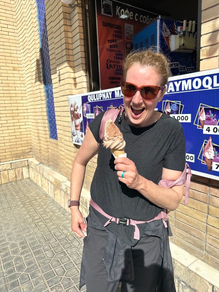 - Final scavenge was “Moscow” ice cream. We ventured all the way across town to find closed. Instead we went to the street vender and get the Best vanilla with caramel. Who would’ve thought! As per typical, we picked up some friends who wanted to actually take us to our destination rather than just point the way. When two of the boys peeled off, they asked the third to continue with us and keep us safe. Such kind people in Uzbekistan!