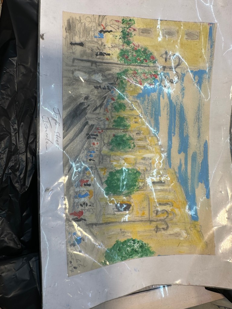 Wandering through the streets we encountered some familiar sites, and the college counselor (Shannon) found a wall of t-shirts, with the names of the colleges written in Hebrew. Had we not been rushing to the next scavenge, she would have come home with a few. Sadly, no Emory t shirts! As per typical, we got American pricing on Shannon’s street art. $100 for a beautiful street scene. Starting price was $200 (good job Shannon for bargaining!). Then to the hole in the wall, Falafel shop, for a quick lunch of hummus and falafel . . . for $48. Hmm..