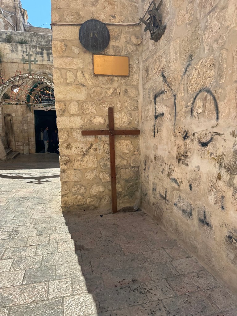 On our way back to Jerusalem, again, we broke group tour protocol by just getting off at the first of the 349 stops that they were going to make on the bus and caught a cab to the Covenant of the Cross, which is where the tree that was used in the crucifixion was grown (again, supposedly). We then got a text from our leader that we needed to get back to the hotel early as there was going to be a huge protest near where we were. As we left, people were pouring in with their Israeli flags. We learned that it was the largest right-wing demonstration in 20 years. 100,000 people were there. Glad that we didn’t get caught in that and that it remained peaceful.